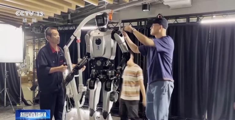总台央视记者 张丛婧:这里是位于上海张江的人形机器人创新中心,我身旁这个比我还高的大家伙,就是正在进行组装和调试的“青龙”机器人。我们在展会现场看到的各种功能的机器人,都是在这里研发制造的。
