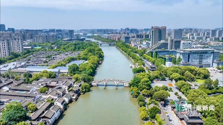 2023年7月18日,京杭运河杭州段二通道通航,大运河南端的“北门户”临平三河交汇、古今并流。为保护700余年历史的广济桥而绕道25年的运河水运,自此打通“梗阻”、百舸争流。