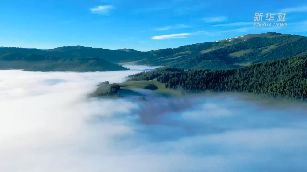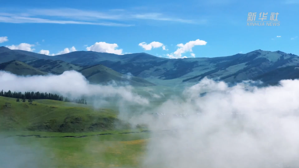 近日,新疆阿勒泰市托勒海特夏牧场在一场雨后,出现如梦如幻的云海景观,云雾从延绵起伏的群山间涌出,时而缥缈,时而翻腾,意象万千,山峦、草原,毡房在茫茫云海中若隐若现,宛若人间仙境。