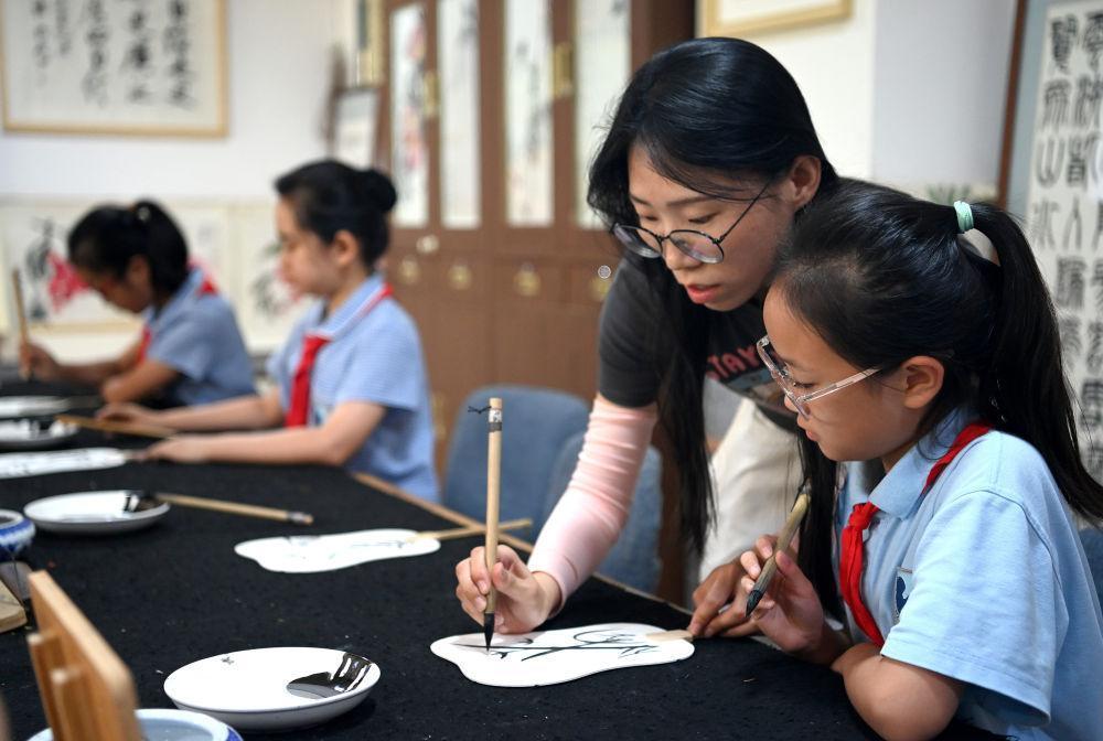 6月12日,西安市新城区励志小学学生在上美术社团课。新华社记者 刘潇 摄