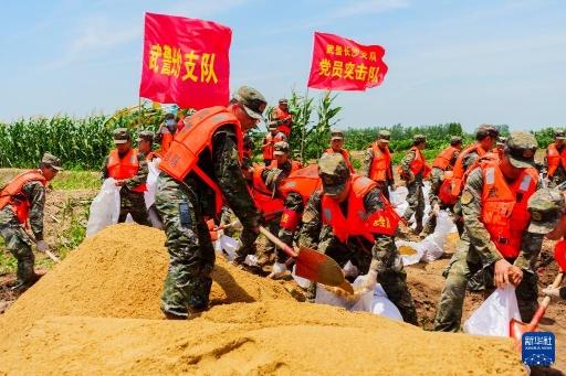 解放军和武警部队官兵、民兵闻令而动,全力以赴奋战在防汛救灾抢险一线。