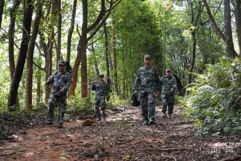 小胡(右后)和同事们正在巡林(央广网记者官文清 摄)