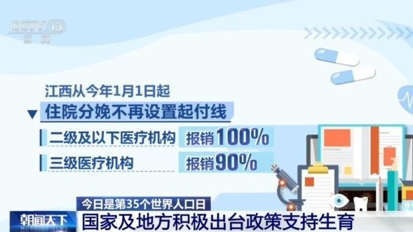 江西从今年1月1日起,住院分娩不再设置起付线,二级及以下医疗机构报销100%、三级医疗机构报销90%。今年7月1日起,浙江省将参加职工基本医保的灵活就业人员和领取失业金人员纳入生育保险范围,并享受生育医疗费用和生育津贴待遇。