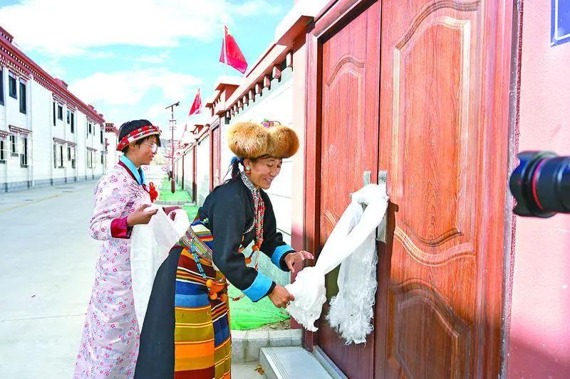 上海援藏重点项目——拉孜县查务乡吉角村集中搬迁暨乡村振兴项目完工并交付,群众入住新家。