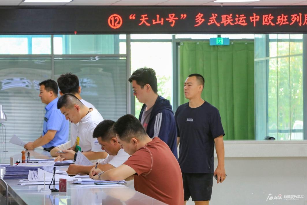 7月9日,客商在乌鲁木齐国际陆港区综合服务大厅办理货运业务。(资料图)石榴云/新疆日报记者 蔡增乐摄