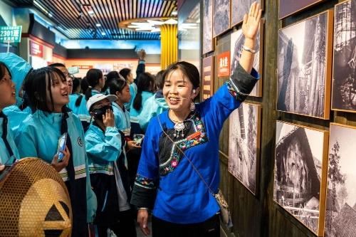 2023年11月1日,在湘西十八洞村,讲解员为游客们讲解十八洞村的故事。新华社记者陈思汗摄