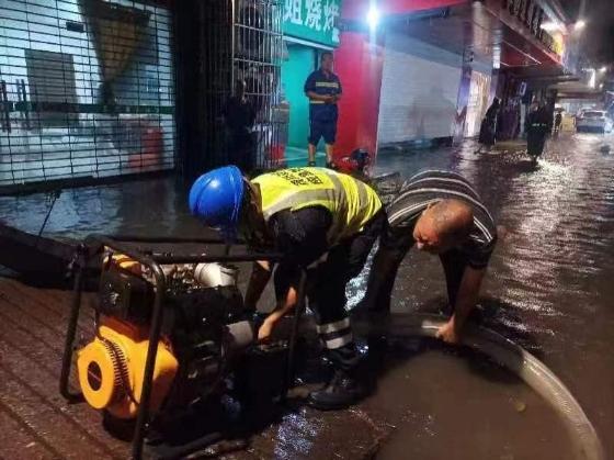 ▲7月14日0时,江津区,专业救援队正在组织开展排涝。江津宣传部供图