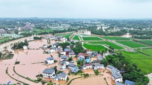 ▲7月11日,梁平区仁贤街道宏山村,暴雨袭击使村庄成为一片泽国。特约摄影 刘辉