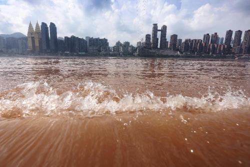 ▲7月12日,渝中区长滨路,长江上游地区连降暴雨,导致长江水位陡涨。特约摄影 钟志兵