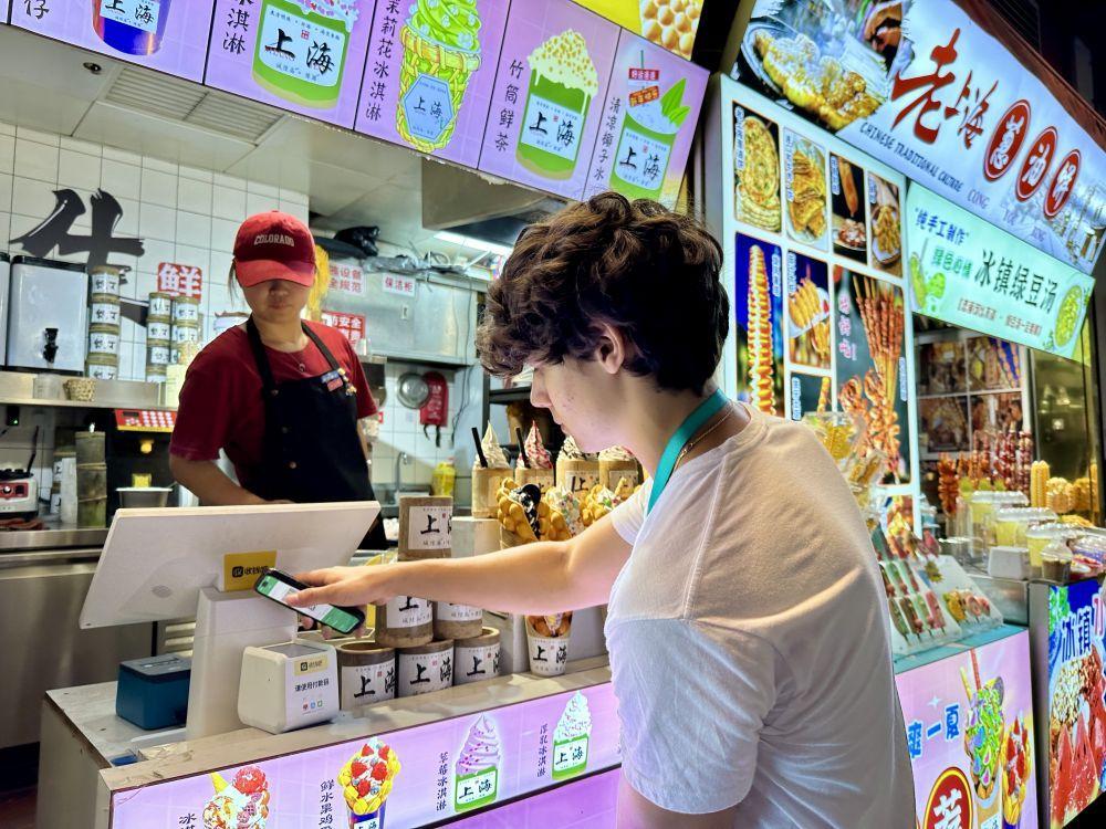 7月10日,美国青少年在上海逛夜市。新华社记者 袁睿 摄