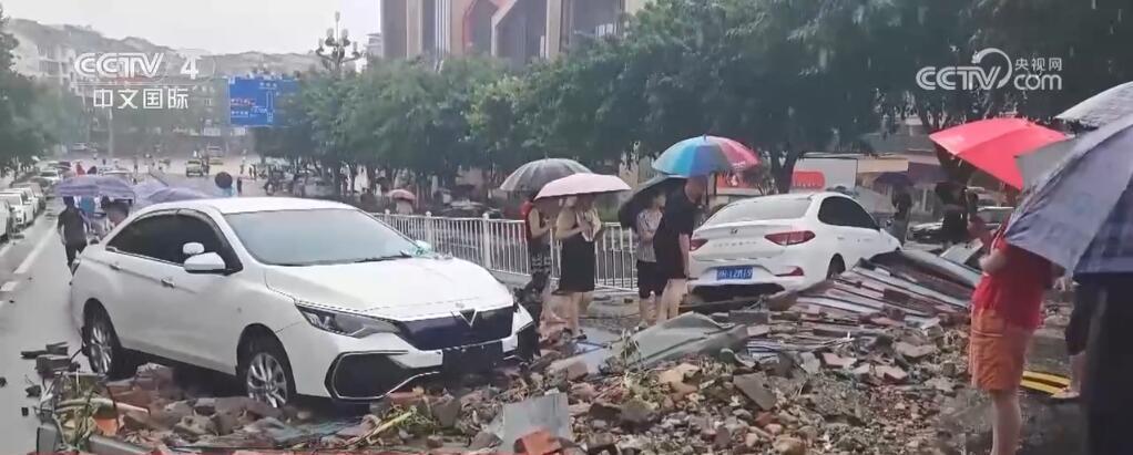 在四川,暴雨造成内江部分地区出现内涝、滑坡等险情,阆中市城区部分道路积水严重,临街多处地势低洼的商铺进水。一小区围墙发生垮塌,大量砖块混合着泥沙冲走了附近停放的两台轿车,并冲进附近商铺,致使道路短时间中断。当地公安、消防、城管和社区工作人员迅速赶到现场,疏散交通,设置警戒线。同时调集作业车辆清理砂石淤泥,转运受损车辆。目前,道路已恢复畅通。