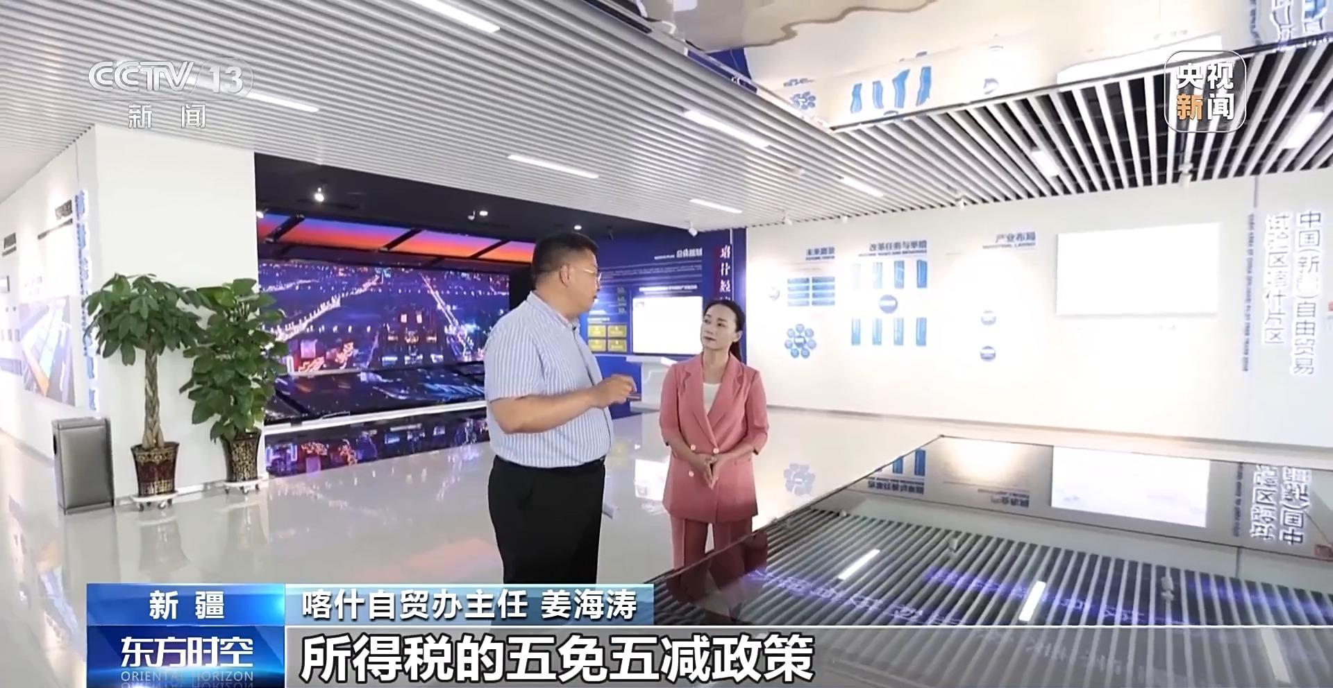 喀什自贸办主任 姜海涛:现在我们已经新增企业671家,目前整个片区的企业总数已经达到了2763家,喀什自贸区它现在是四区叠加,一个是自由贸易试验区,再一个就是国家级的经济开发区,还有综合保税区,还有一个是跨境电商综合试验区,这四区叠加,经济开发区的企业所得税的五免五减政策,在全国是独有的。