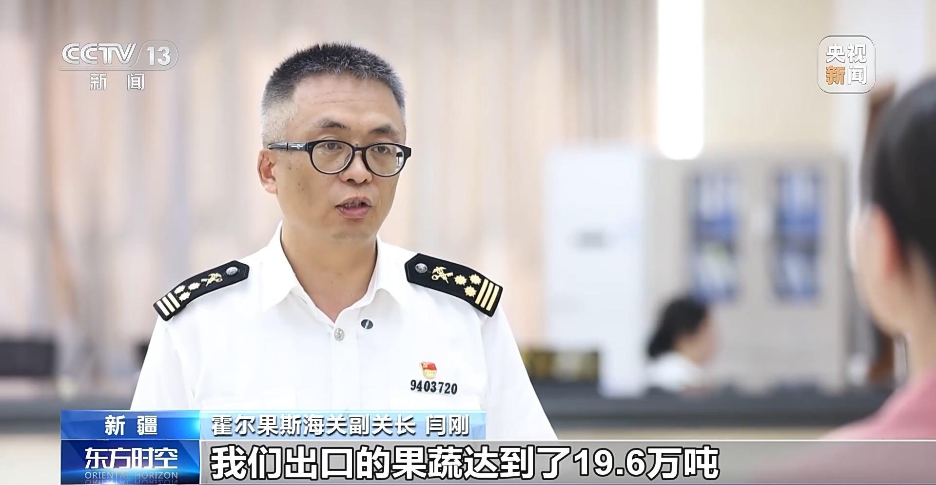 霍尔果斯海关副关长 闫刚:果蔬出口一直是我们口岸的一大特色和亮点,2023年全年我们出口的果蔬达到了19.6万吨,今年1—6月份,我们出口的果蔬就达到了20万吨,就是说我们今年上半年已经完成了去年全年的量,这说明“提前申报+口岸直通”的通关模式,对果蔬出口,对企业减少成本有巨大的推进作用。