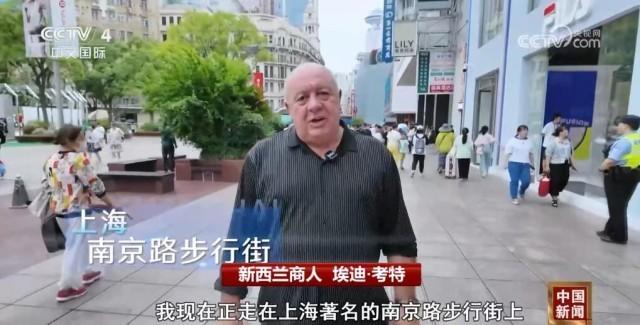 新西兰商人埃迪·考特:“大家好,我是埃迪·考特。我现在正走在上海著名的南京路步行街上,这里有进博集市城市会客厅、新西兰主题馆,一起去看一看。”
