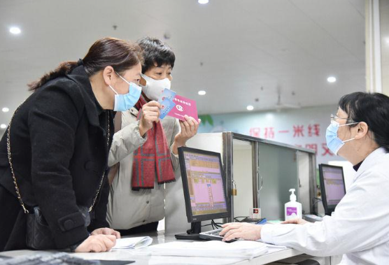 △2022年1月14日,福建三明沙县区总医院便民门诊窗口,群众在咨询报销情况。