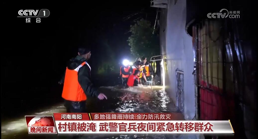 河南南阳:村镇被淹 武警官兵夜间紧急转移群众