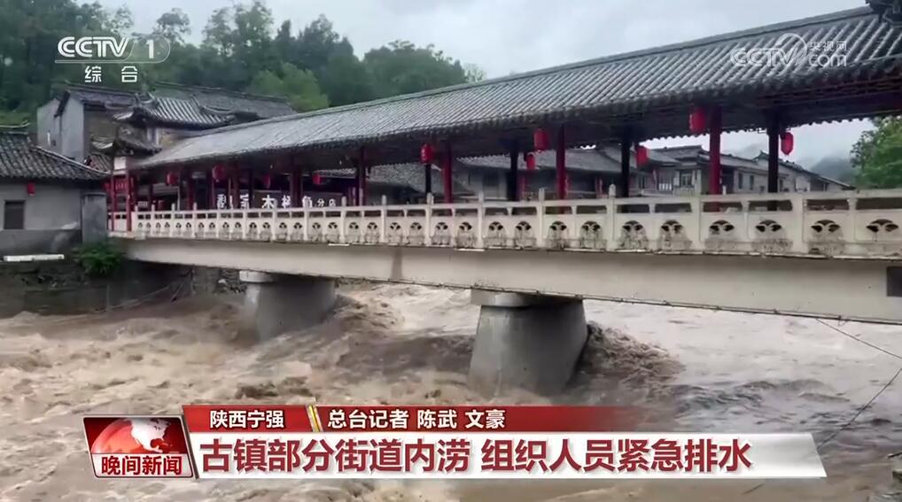 陕西宁强:古镇部分街道内涝 组织人员紧急排水
