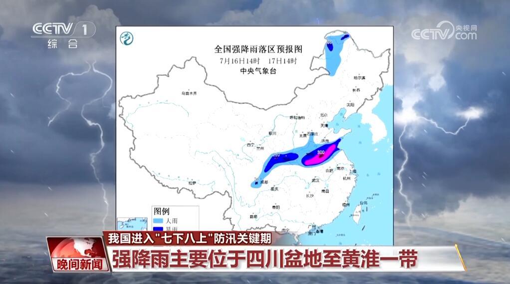 强降雨主要位于四川盆地至黄淮一带