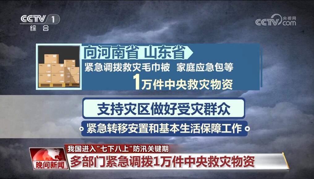 7月16日,国家防灾减灾救灾委员会办公室、应急管理部根据当前暴雨洪涝灾情和救灾工作需要,会同国家粮食和物资储备局向河南、山东两省紧急调拨救灾毛巾被、家庭应急包等1万件中央救灾物资,支持灾区做好受灾群众紧急转移安置和基本生活保障工作。