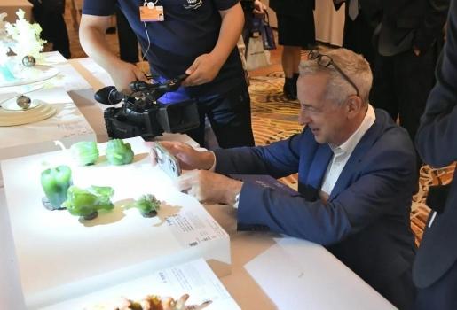 外国嘉宾在岫岩玉雕前驻足拍照。李亮摄