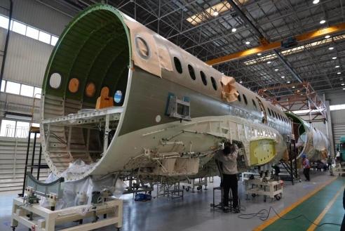工人在航空工业沈飞民机装配车间里工作。人民网 邱宇哲摄