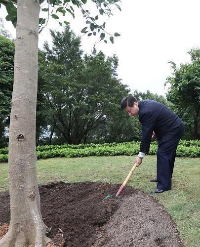 2012年12月,党的十八大后首次赴地方考察,习近平总书记来到深圳莲花山公园,深情瞻仰邓小平塑像,并亲手种下一棵高山榕。