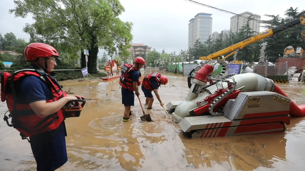 为了提高排水效率,截至7月18日8时,消防部门已累计出动车辆46台次,出动人员252人次,正在多个点位全力清淤排涝。