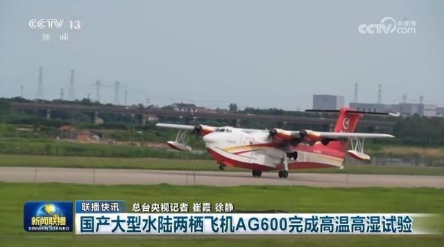 记者从中国航空工业集团了解到,近日,我国自主研制的大型水陆两栖飞机AG600在江西南昌完成高温高湿飞行试验,验证了飞机在高温高湿严酷环境条件下的系统功能和性能。