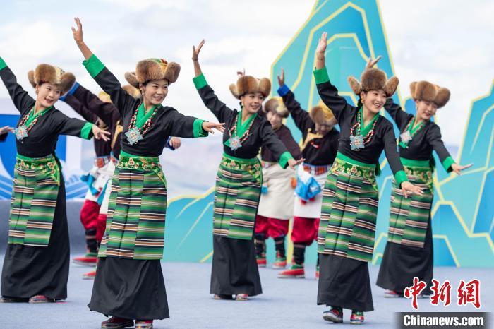 中新网拉萨7月18日电 洁白的念青唐古拉雪山、湛蓝的高原湖水、热情奔放的传统藏式舞蹈……7月17日,西藏“天湖”纳木错风和日丽、景色宜人,以“幸福西藏 扎西德勒”为主题的第二届西藏文化艺术节惠民演出在湖畔上演。