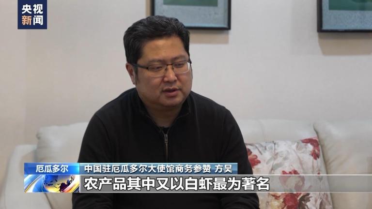 中国驻厄瓜多尔大使馆商务参赞 方昊:农产品中又以白虾最为著名,还有厄瓜多尔特色的黄色火龙果,当然也包括特色的百香果。可以让中国的老百姓不出家门,就可以体会到南美的热带风情。