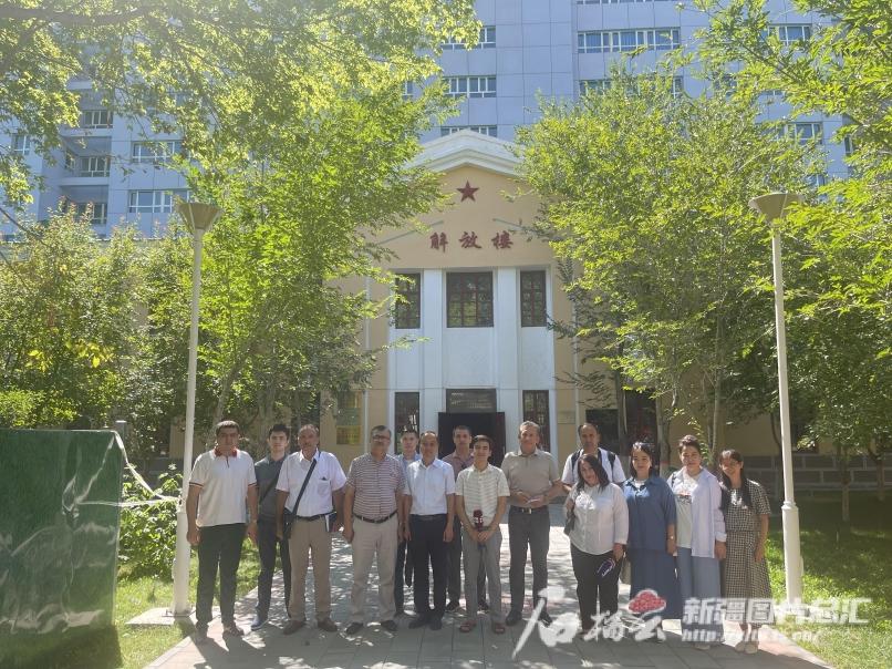 代表团成员在新疆大学校史馆前合影留念。天山网-新疆日报记者刘翔 摄