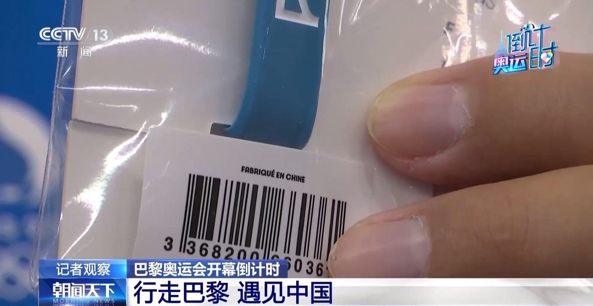 总台央视记者 黄达:巴黎奥运会开幕在即,在国际广播中心的官方纪念品商店,从备受欢迎的钥匙链、奥运手环以及吉祥物“弗里热”,他们之中许多,都有着一个共同的特点,就是下面写着的这行字——中国制造。