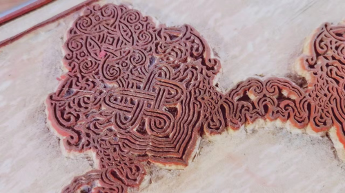 雕版印刷从内地传入西藏已有近千年历史。饕餮、龙凤、双鱼、长城纹、万字纹等中华民族的共同元素符号,在雕版上随处可见。细心观察可见,一些装饰纹样的花边被古人设计成迷宫,经过一番摸索可以走通。