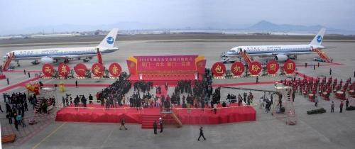 2006年,厦航作为新增厦门航点的唯一运营航空公司,执行了厦门-台北、厦门-高雄航线的包机任务。这是首航仪式现场。