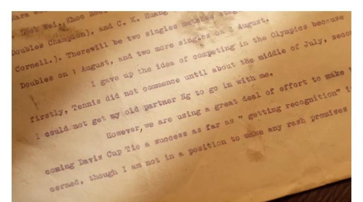 (1924年中国网球队队长韦荣洛给葛雷的信:表达放弃参加1924年巴黎奥运会)