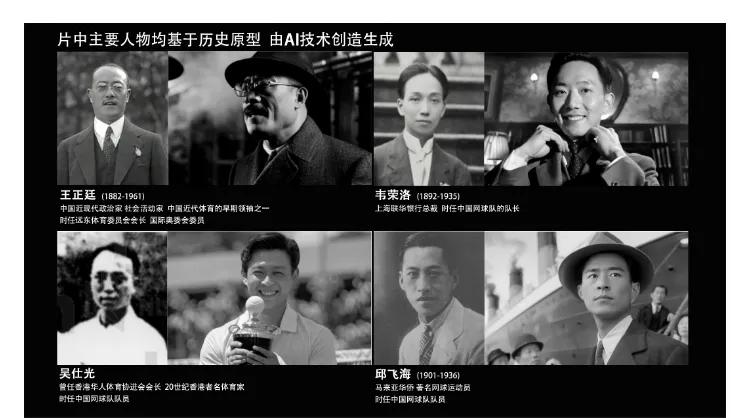 (4位主要人物历史原型及片中由AI技术创造生成的人物形象)