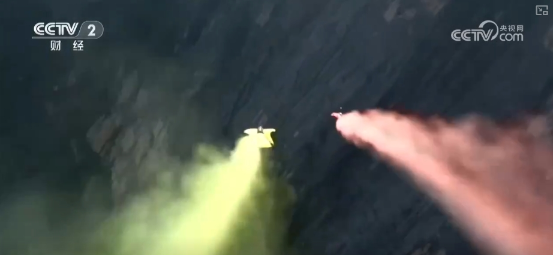 两名运动员组队,从海拔3200米的昭通大山包景区大崖洞玻璃跳台跃下,以245公里飞行时速,在大峡谷完成急速飞翔、空中转体270度后,降落在海拔700米的着陆点。