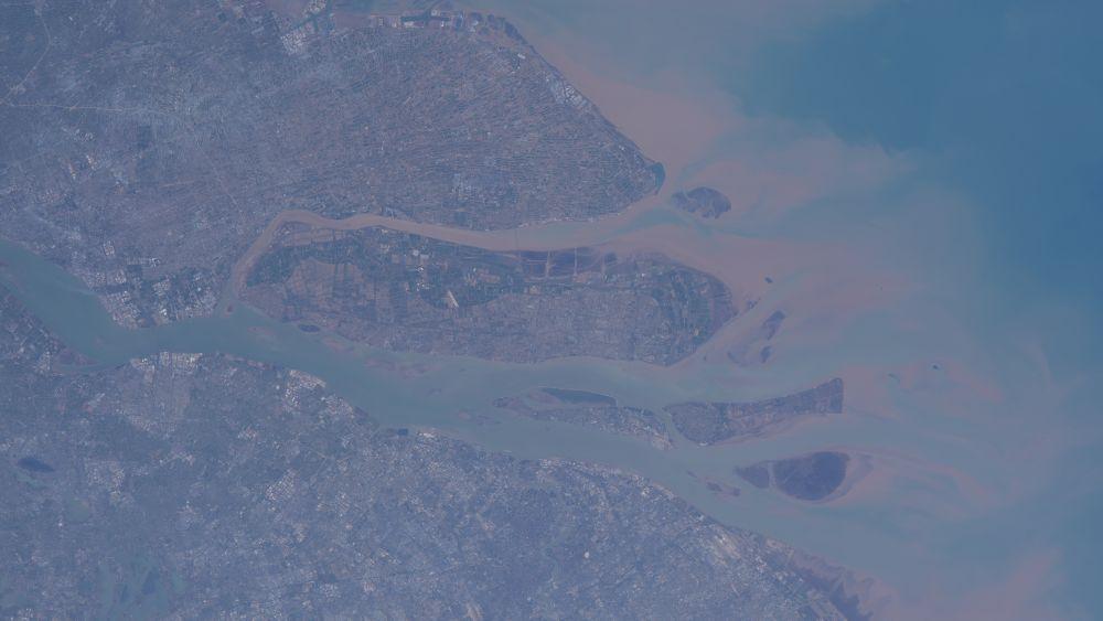 这是神舟十七号航天员汤洪波在中国空间站拍摄的长江入海口。新华社发