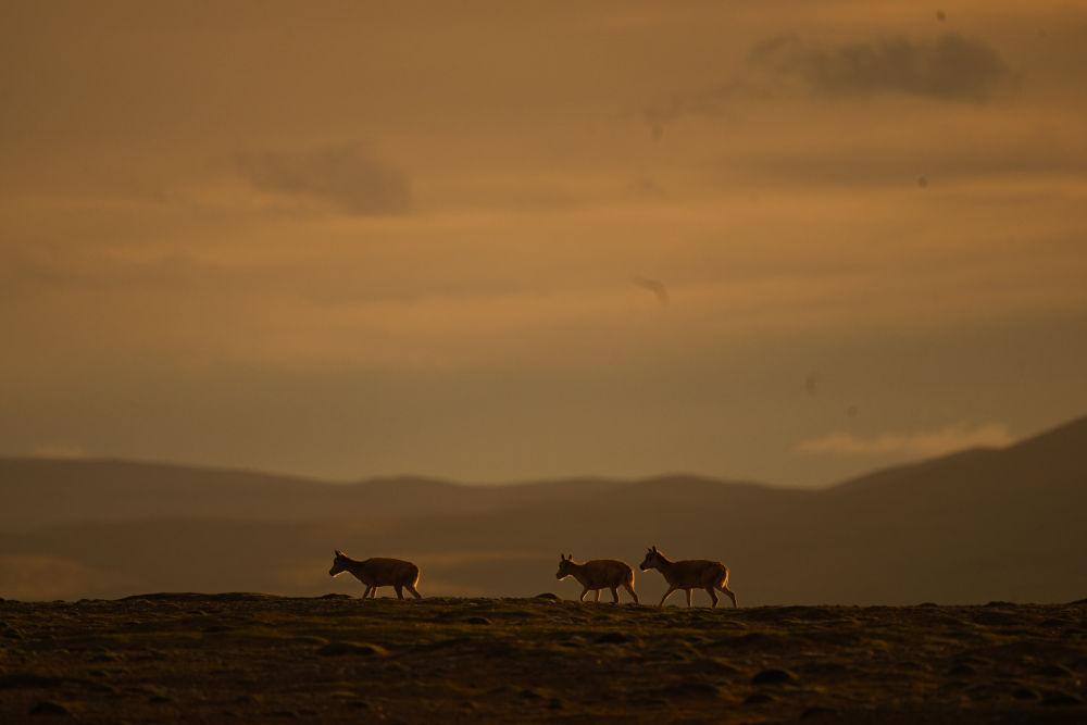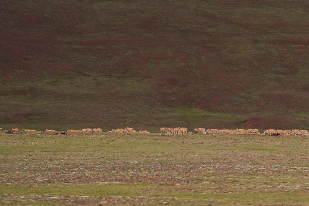 7月8日,在可可西里卓乃湖区域,一群藏羚羊在活动。新华社发(杜笑微 摄)