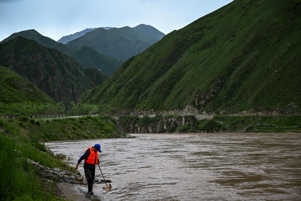 7月20日,在直门达水文站,长江科学院流域水环境研究所乔强龙开展现场鱼类监测。新华社记者 伍志尊 摄