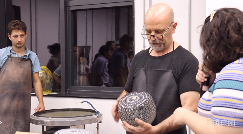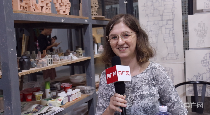 国外陶瓷创作者向记者展示自己的作品(央广网见习记者 郇康新 摄)