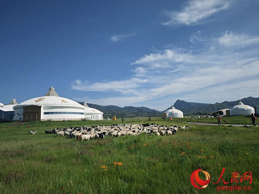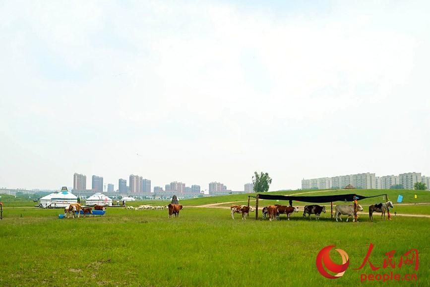 在兴安盟科右前旗的城区内,也有一大片城中草原。放眼望去,牛羊在吃草,马儿在奔跑,洁白的蒙古包像朵朵白云点缀在其中,低头可见的是,绿草间色彩斑斓的鲜花。
