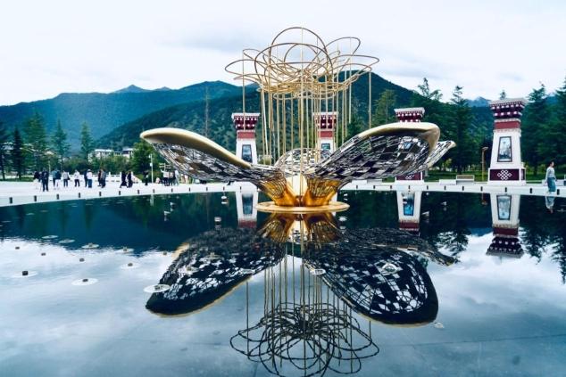 工布公园里的城市地标雕塑——毕秀之子。人民网记者 益西康珠 摄