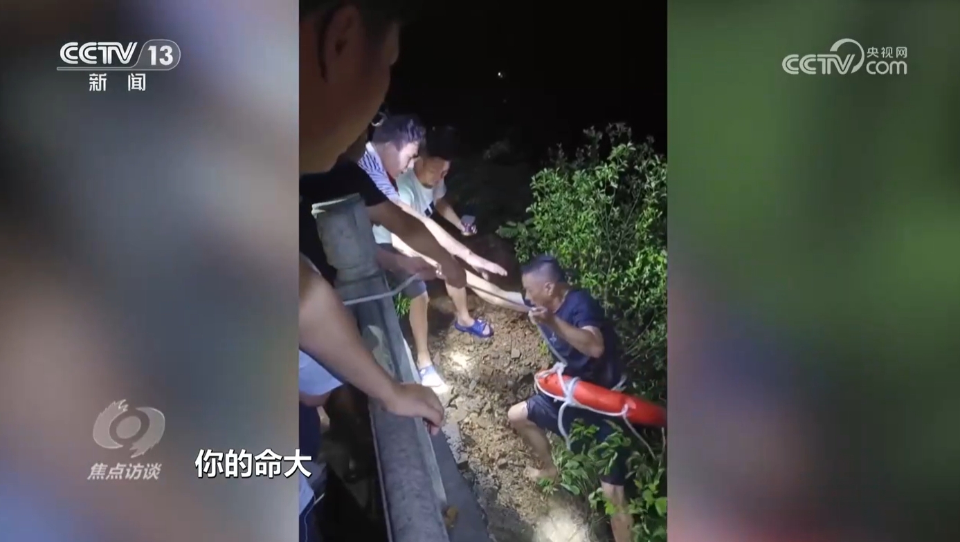 被救者叫钟洪杰。事发时,钟洪杰乘坐的小客车坠入水中,他从破碎的车窗爬了出来,在水中摸索了一会儿,抓到了河水中一块裸露的石头,后来被村民们发现。