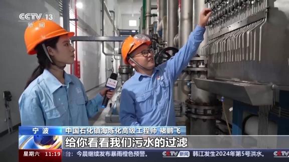 中国石化镇海炼化高级工程师 褚鹏飞:我们石油炼制里面产生的含油污水,全程都是全密闭地处理,经过一系列生化处理之后,正在这过滤,过滤精度也是非常高,能够达到纳米级别。我们处理的工艺堪比纯净水的工艺,而且我们现在一年能够处理1000多万吨的污水,这些处理的污水也全部在我们厂内实现了循环利用,每年堪比一个西湖。现在我们也实现了无污染、零排放。