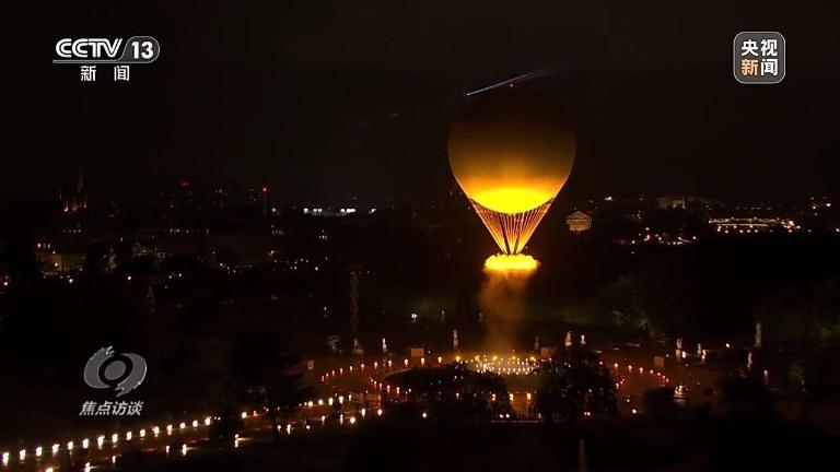 架设在热气球上的巴黎奥运会主火炬台缓缓升空,让奥运圣火的光芒点亮夜空。本届巴黎奥运会将开幕式历史性地移至塞纳河上举办,这也是奥运会开幕式首次不在体育场馆内举行。超过200个代表团搭乘80多艘游船,沿着塞纳河由东向西航行约6公里,最终抵达埃菲尔铁塔对岸的特罗卡德罗广场。
