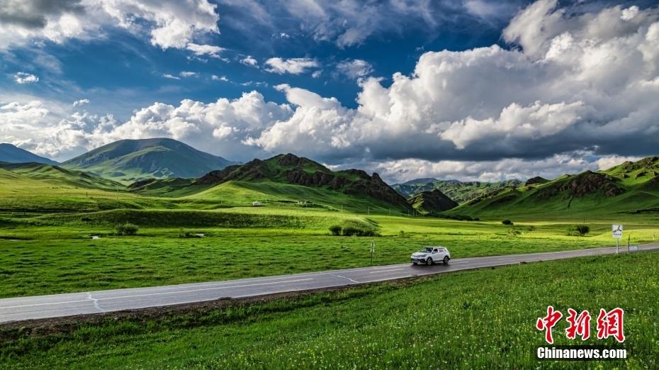 近日,新疆伊犁州,伊昭公路沿线绿草如茵。伊昭公路北起伊宁市伊犁河二桥,南至昭苏县城。