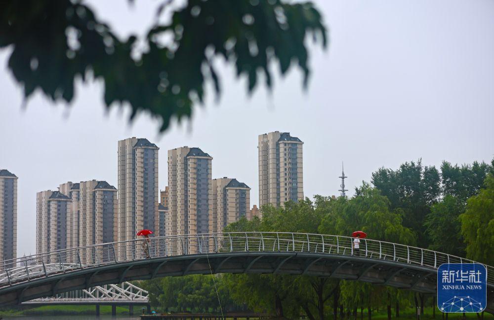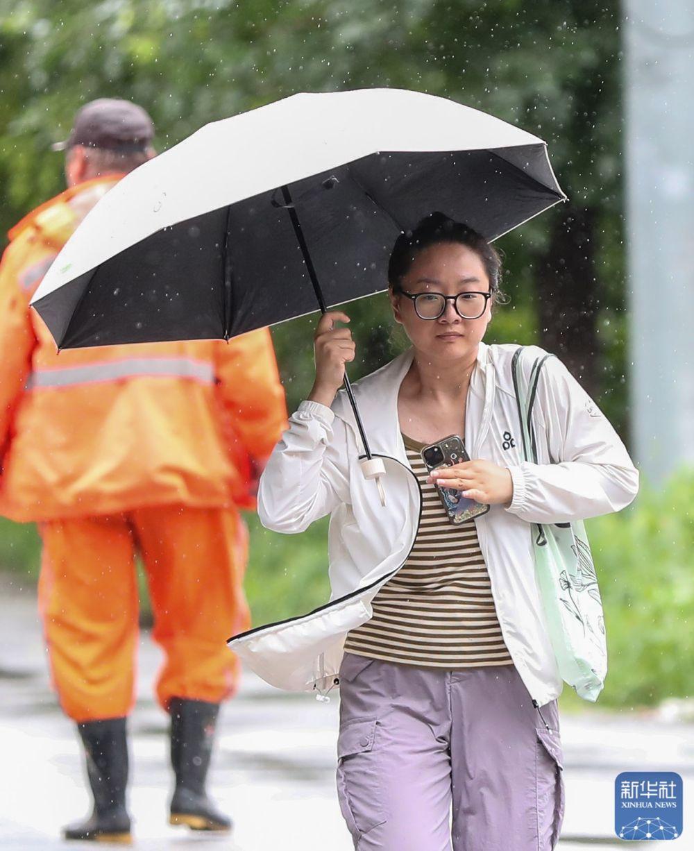 7月28日,在辽宁省沈阳市大东区,市民在雨中出行。新华社记者龙雷摄