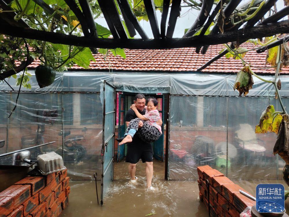 7月27日,在辽宁省鞍山市千山区老虎屯村,村干部在转移受灾群众。新华社发