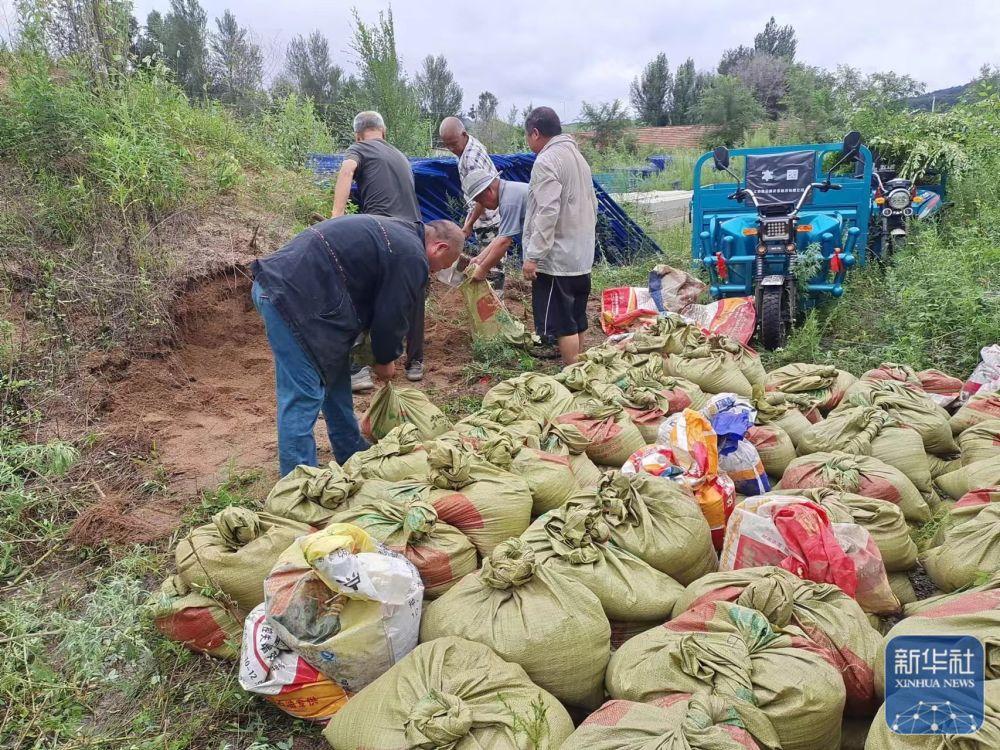 7月27日,辽宁省铁岭县平顶堡镇组织各村紧急装运沙袋,全镇共准备5000个沙袋迎战强降雨。新华社发